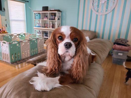 Quinn is a male Cavalier King Charles Spaniel. Carefully selected as a great representative of his breed, Deb decided to make him part of their program. Deb has passed Good Dog’s screening process, which involved a review of their breeding practices, environment, and the mental and physical health of their dogs.