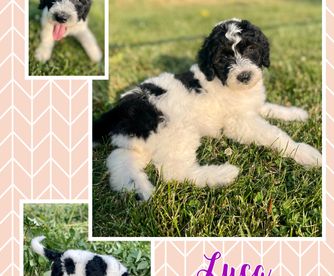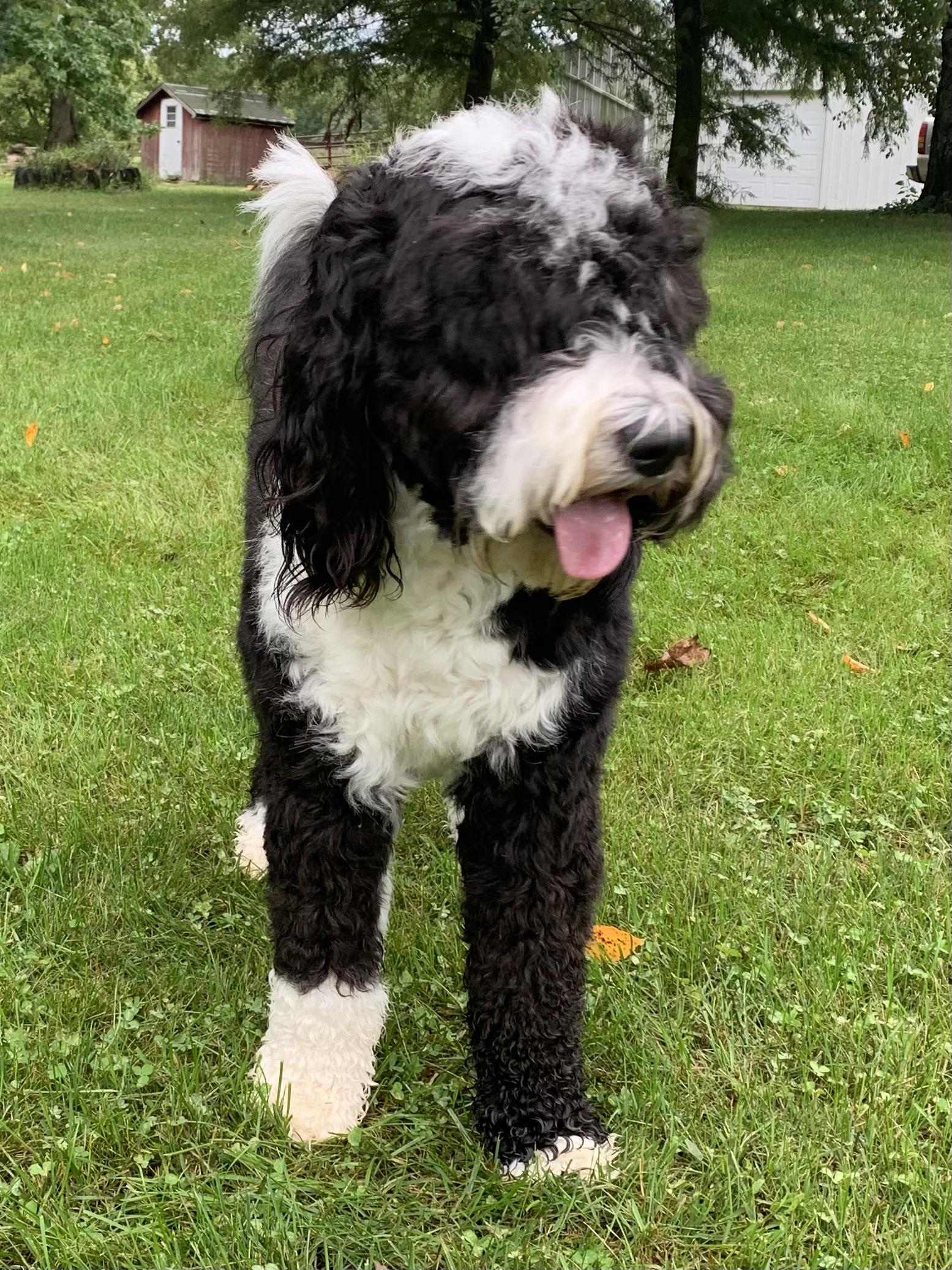 Macie is a female Sheepadoodle. Carefully selected as a great representative of her breed, Bambi decided to make her part of their program. Bambi has passed Good Dog’s screening process, which involved a review of their breeding practices, environment, and the mental and physical health of their dogs.