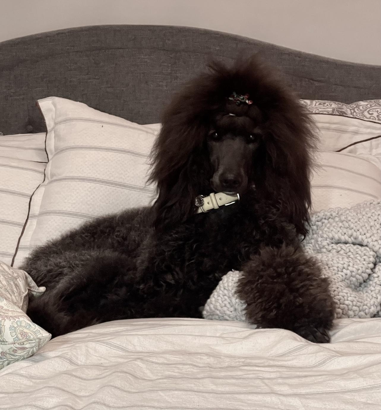 Persephone is a female Poodle. Carefully selected as a great representative of her breed, Bambi decided to make her part of their program. Bambi has passed Good Dog’s screening process, which involved a review of their breeding practices, environment, and the mental and physical health of their dogs.