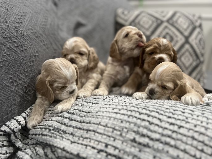 Inspirational Treasures reports to performing the health tests below on their breeding dogs. Ask your breeder about the tests performed on the parents of your litter. Learn more about health testing for Cocker Spaniels.