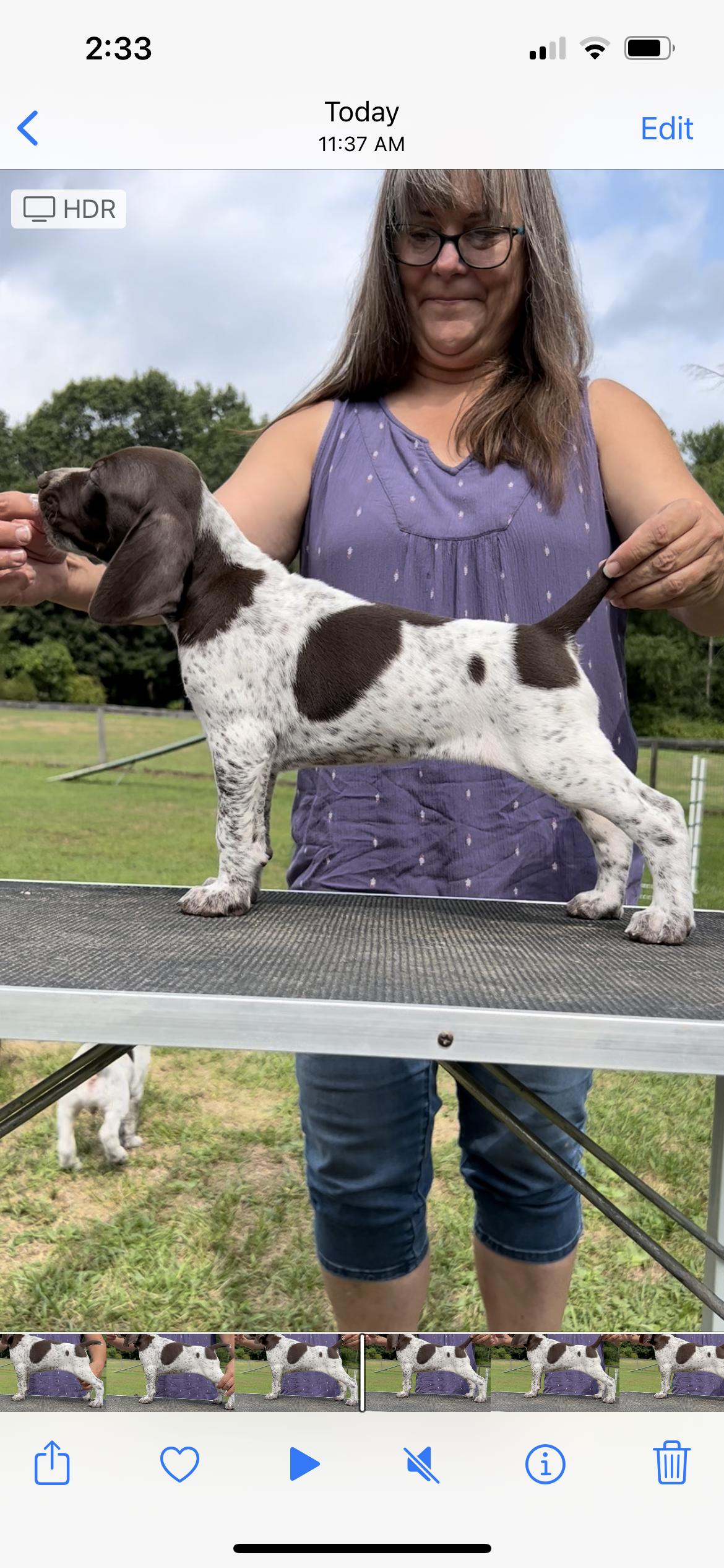 She has all health clearances as recommended by the German Shorthaired Pointer Club of America.