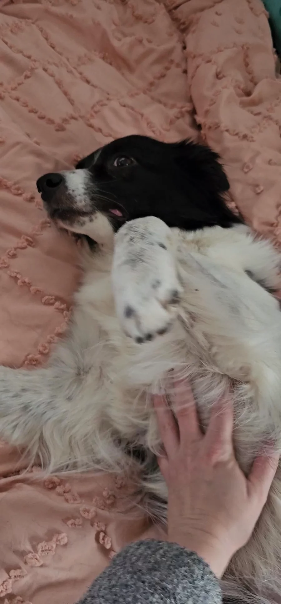 Valor is my very best Budders, my Budder Boy, my V-Man. He is my second border collie and the first male dog that I've ever had. He has shown me how deeply devoted and affectionate boys are, and what a treat it is to be loved by him. Valor is the kind of dog who makes your day better just by being a part of it. He gives the sweetest kisses and is a wonderful little spoon. Basically, he considers it his job to fill our emotional cups and he does a wonderful job doing so. Valor comes from herding and performance lines and is excellent in both areas. He is naturally very talented on sheep and with very limited training has been able to fetch sheep at a distance in a large pasture and bring them back with a cool and calm head. While my resources for herding have been regrettably limited when it comes to getting more deeply involved in herding, it is one area that he absolutely excels in and he's passed this trait on to his puppies. Flyball is Valor's main sport, but he has also trained and/or competed in disc, shed antler hunting, mushroom foraging, barn hunt, and is my retired service dog after several years of full time work. Valor has a natural heart rate and rhythm alert and is incredibly intuitive and tuned in to the emotions of his people, all of which he has blessed his puppies with. He has chosen for himself a new full time role as my partner's service dog, though Valor works from home these days 😉 Valor has had one litter with Jubilee, from which my Destiny was born. He is now retired.
