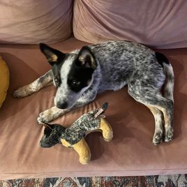 This was our first experience with Good Dog. Finding the perfect pooch was more streamlined than I have experienced using other platforms. While there were a few litters to choose from nationwide (within a reasonable driving distance), Institute Australian Cattle Dogs had a detailed listing that grabbed my attention. I initially sent a message through the app to inquire about one pup, but gave Dixie an overview of the temperament we sought, and described our home setting of a small hobby farm with livestock. We turned our discussion to one lively female, from a breeding between the sire Ratchet and dam Brandy. Dixie's instincts were spot on! Dixie was highly accommodating in trying to set up a time when we could meet the pup, The payment process was super simple and highly secure, and the entire transaction went smoothly. Even after the sale, Dixie gladly fields questions. She truly cares about where her pups wind up, and that love shines through with the little touches like the goodie bag our puppy came home with (containing a ball, toys, and a blanket with the mother Brandy's and littermates' scents).