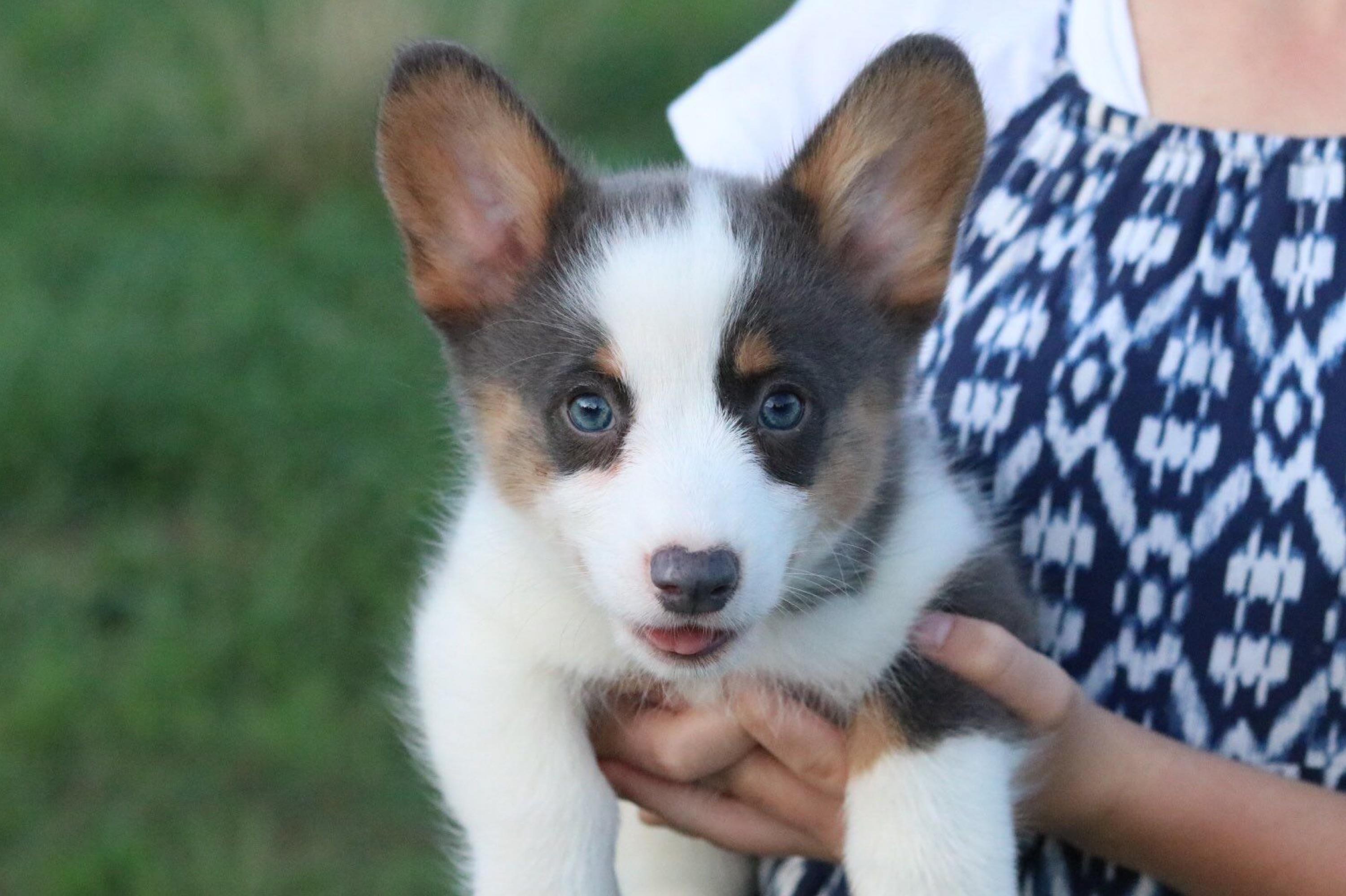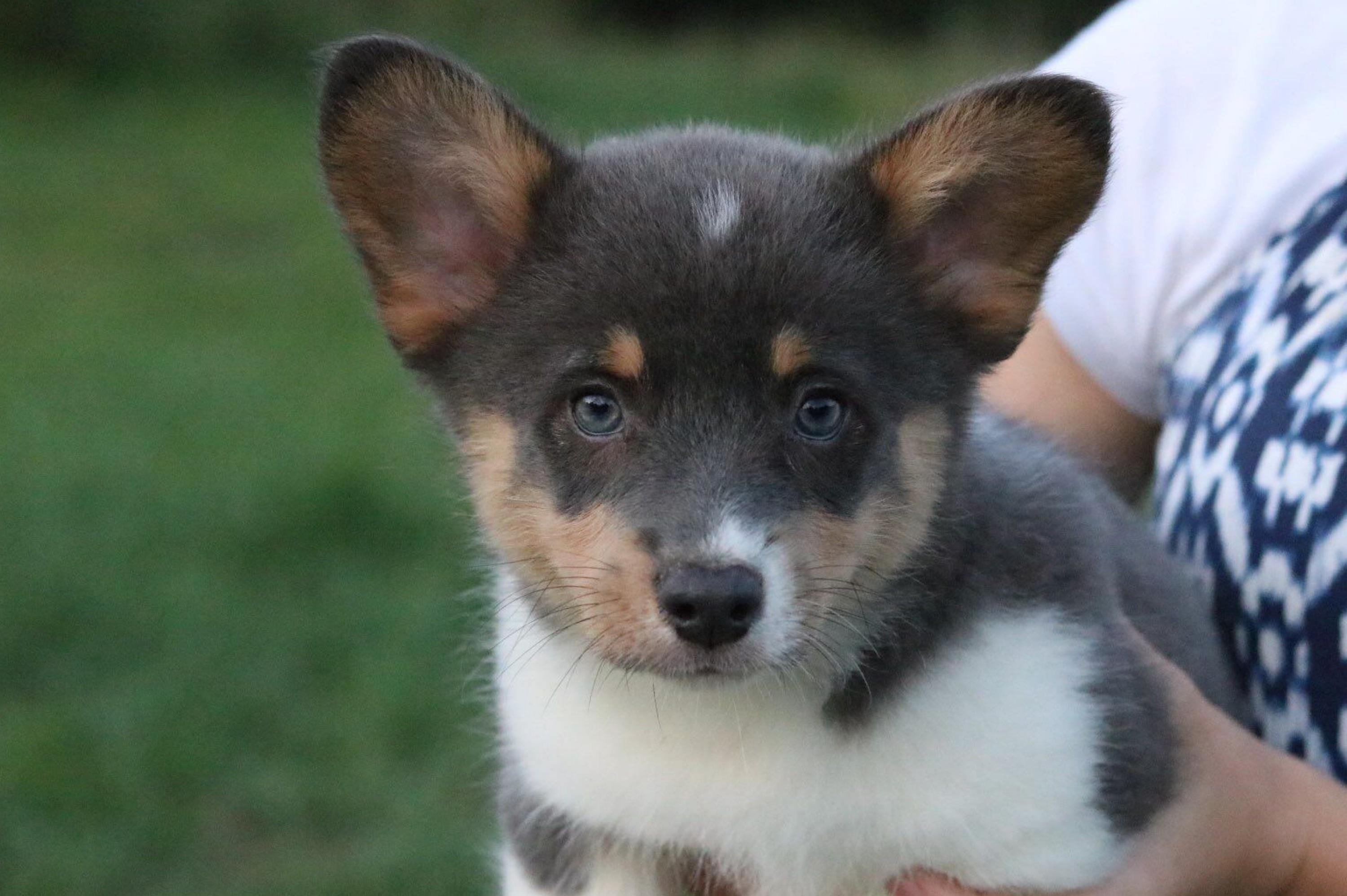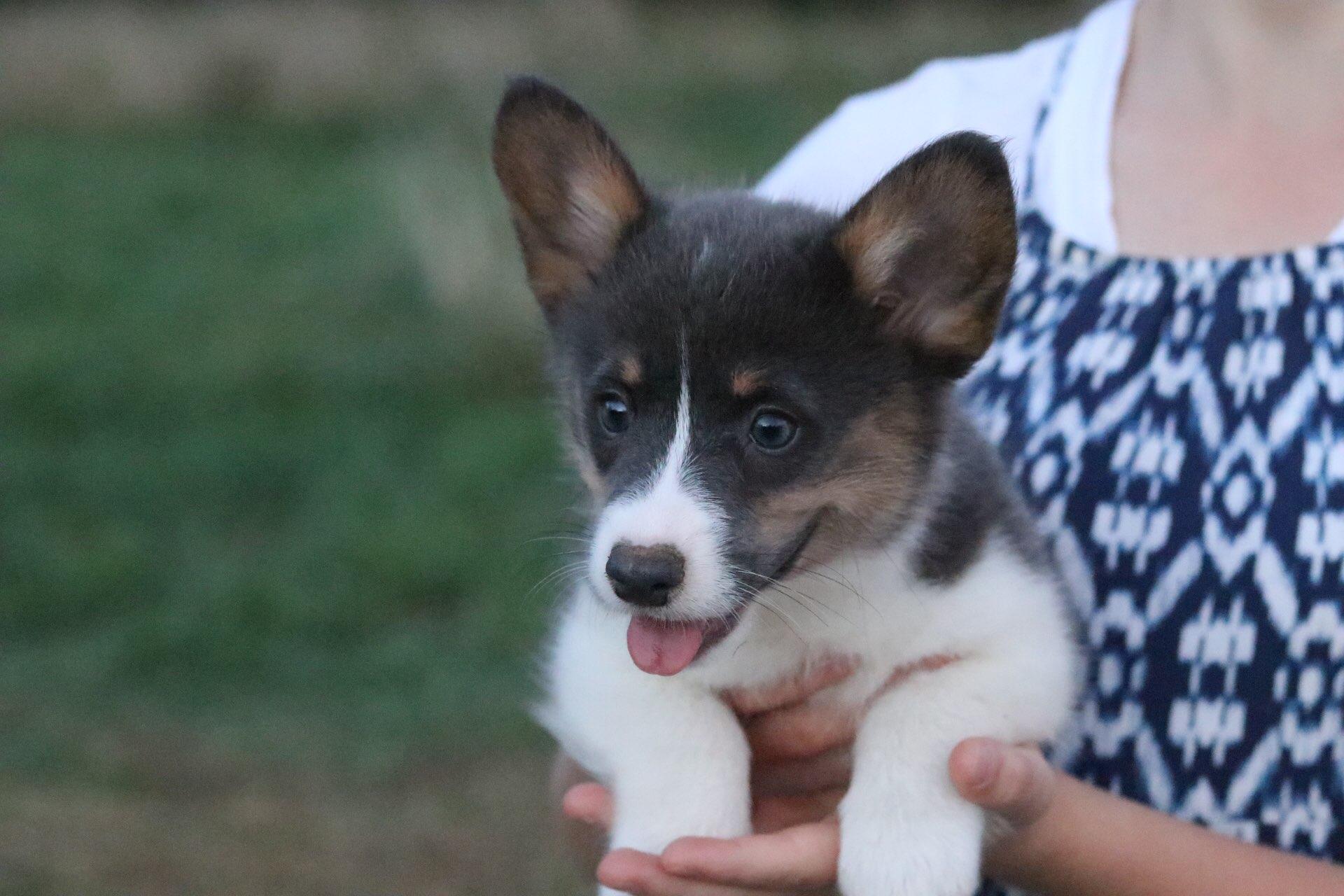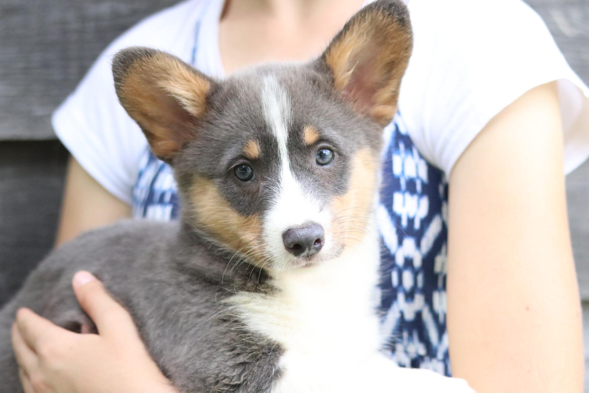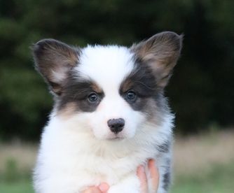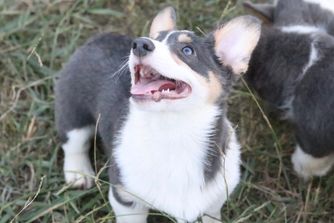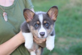 Our Pembroke Welsh Corgi puppies include sable, blue, and black and tan. American Corgi puppies include sable merle and white, blue merle and white, sable, and black and tan. Colors will vary depending on the parent dogs.
