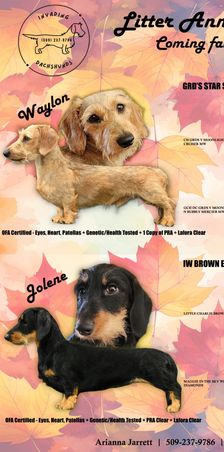 I'm Arianna J., the breeder behind Invading Dachshunds : AKC Miniature Wirehairs located in Moses Lake, WA. We prioritize health, temperament, and conformation when considering our litters. We want our dogs to be successful in their new homes whether they will be pets, hunters, or competitors in AKC events such as field trials, earthdog, fastcat, and conformation.