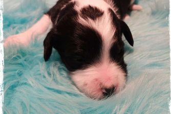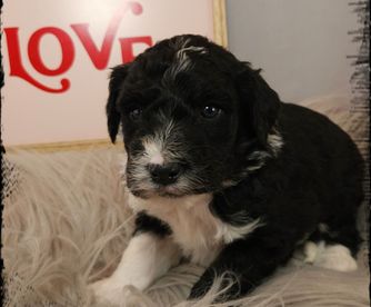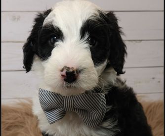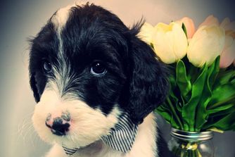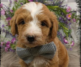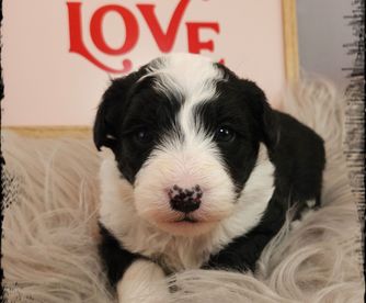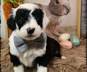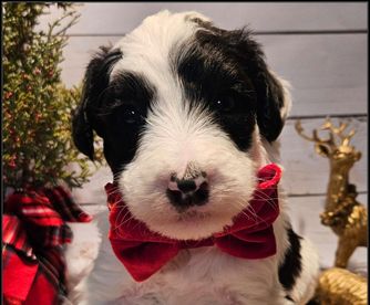 Dealing with Kristen was about as perfect as a pet adoption could be. She was helpful and informative, and you could tell that the English sheepdog we received had been raised in a loving environment. The gift bag that came with William was incredibly useful, especially the stuffed dog with a bit of a scent of home. It seemed to calm the puppy down on its long ride home. Our pup has been to our vet and has come away with a perfect bill of health. The vet stated it obviously had been well cared for. Iowa's Doodle, in my opinion, is the perfect place to get a puppy from.