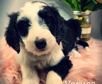 Lolipop is a female Sheepadoodle. Carefully selected as a great representative of her breed, Kristen decided to make her part of their program. Kristen has passed Good Dog’s screening process, which involved a review of their breeding practices, environment, and the mental and physical health of their dogs.