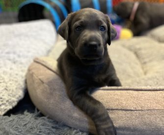 Our puppies include silver and charcoal. Colors will vary depending on the parent dogs.