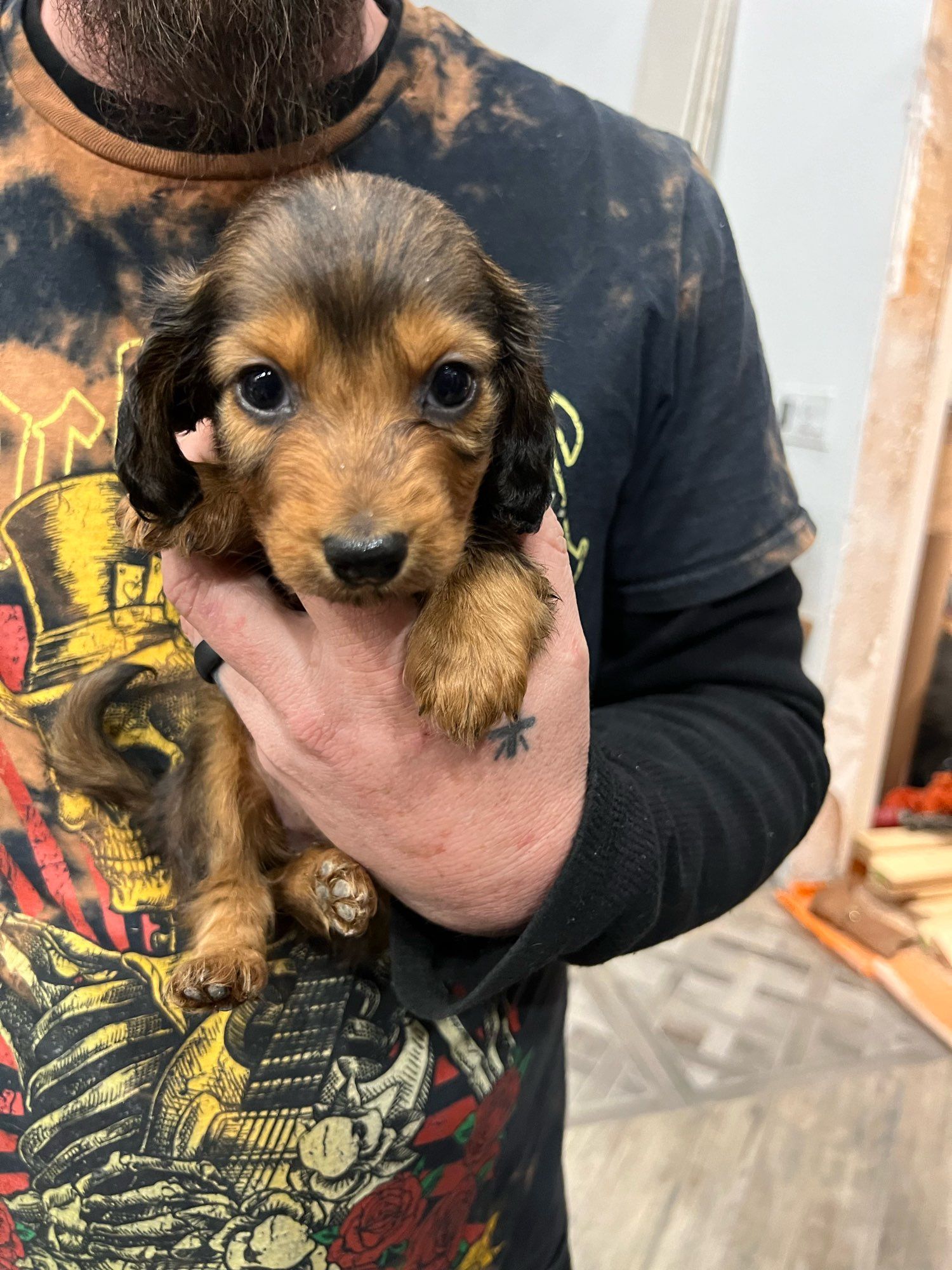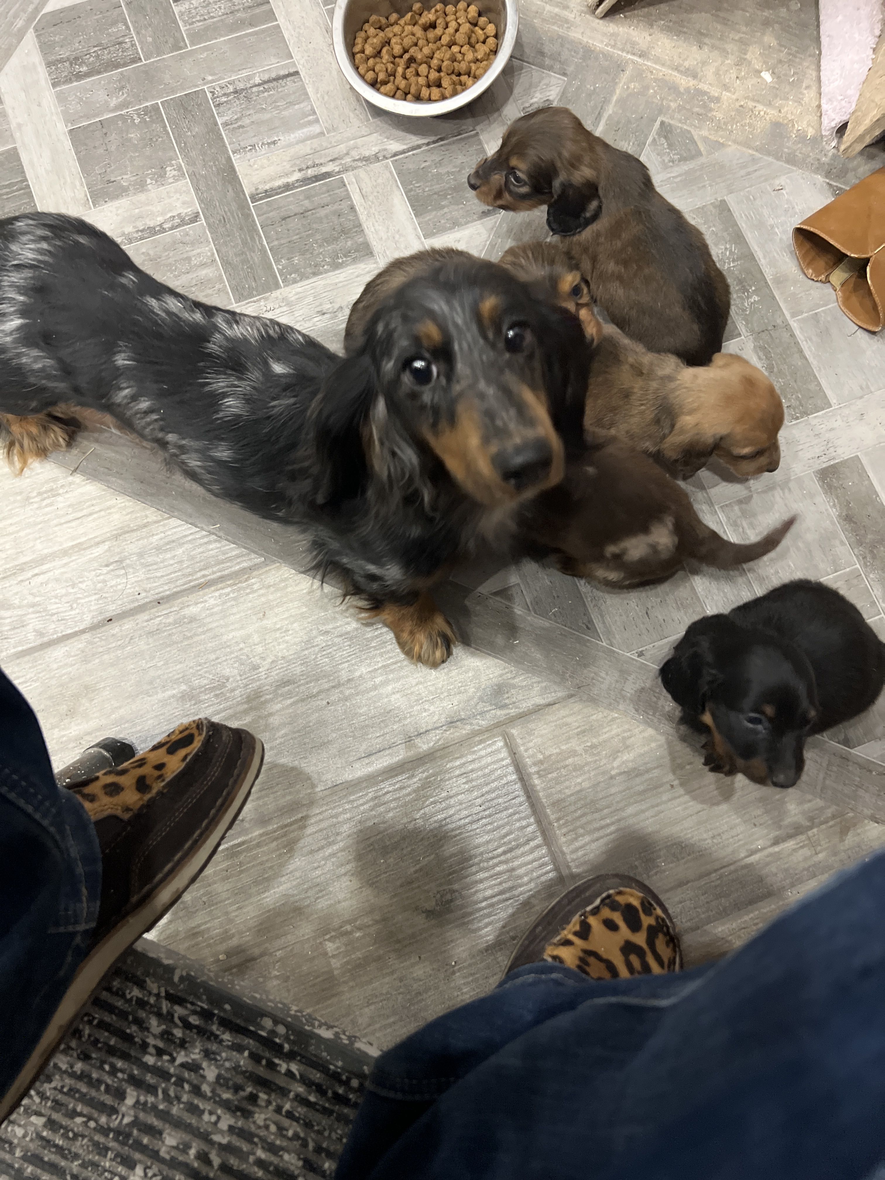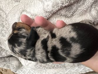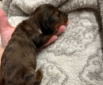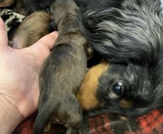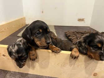 Our puppies include black, chocolate, chocolate and cream, chocolate and tan, black and tan, and dapple. Colors will vary depending on the parent dogs.