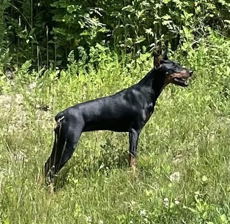 Kazi is a female German Pinscher. Carefully selected as a great representative of her breed, Jill decided to make her part of their program. Jill has passed Good Dog’s screening process, which involved a review of their breeding practices, environment, and the mental and physical health of their dogs.