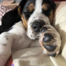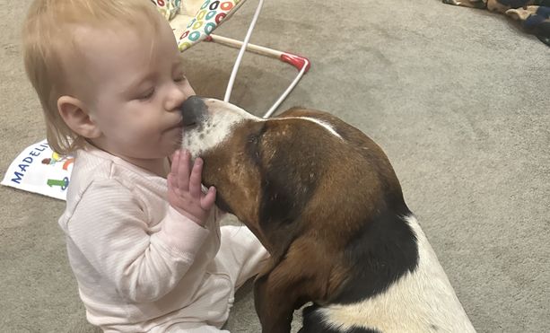 Mozie is an American basset hound and is the sweetest girl in the world. She’s only happy giving cuddles on the couch.