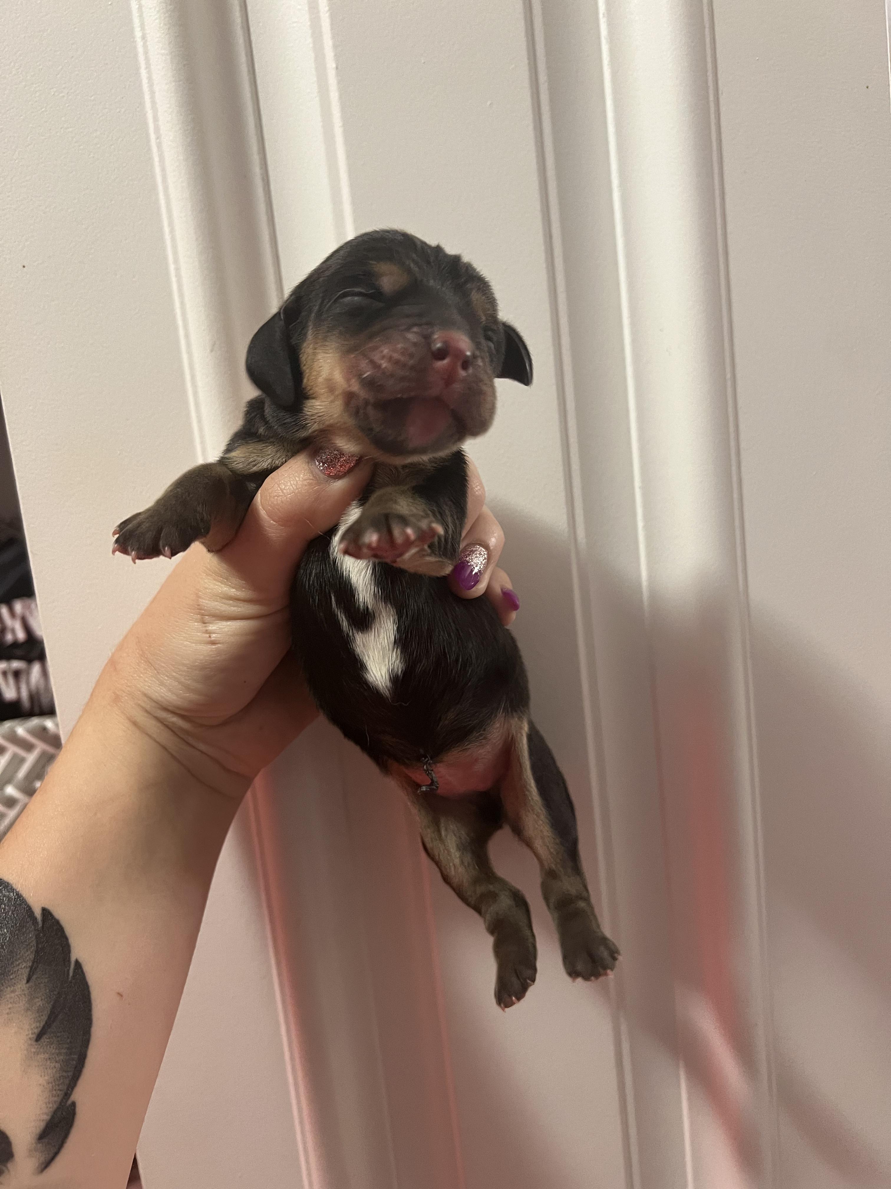 “Our price includes de worming, vaccinations, limited akc registration and a full physical from a licensed veterinarian. Non refundable deposit.”