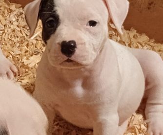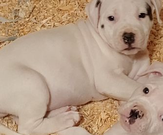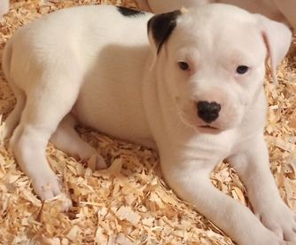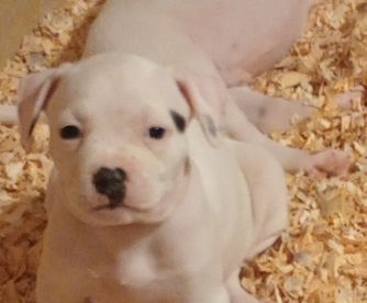 Our puppies include white and white and brindle. Colors will vary depending on the parent dogs.