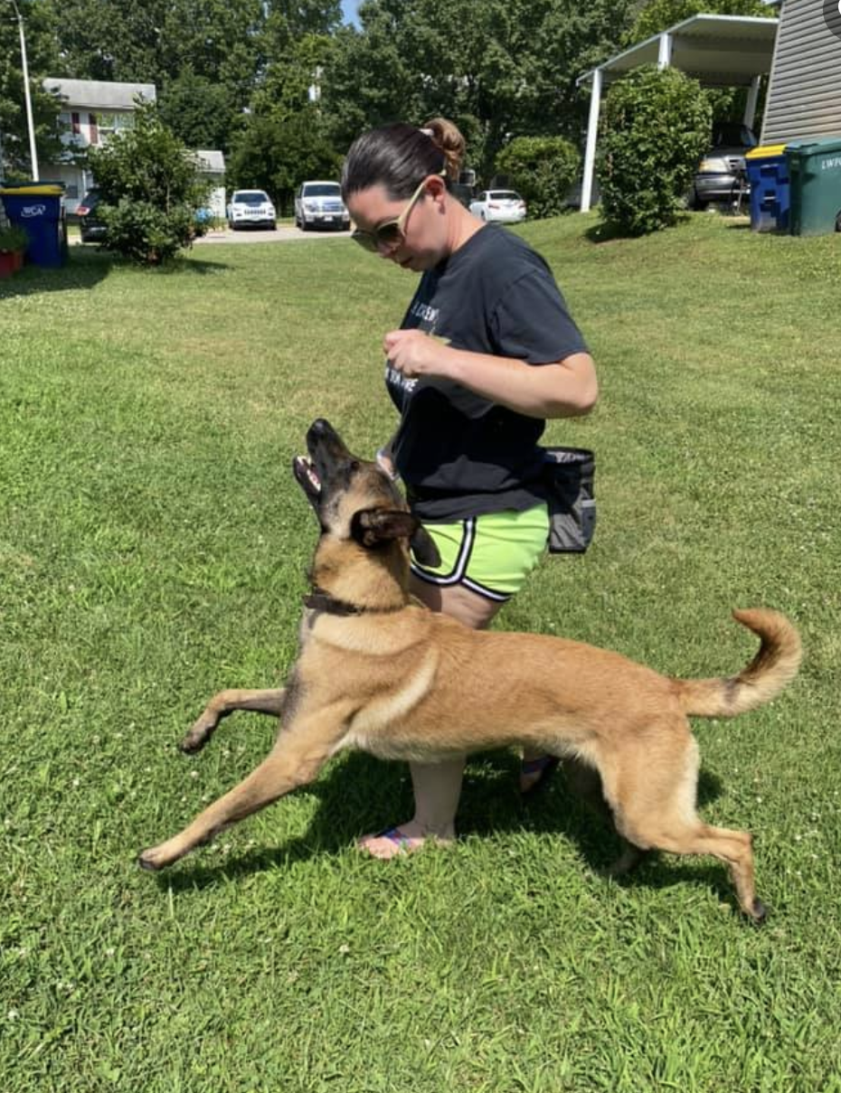 Chucky is a male Belgian Malinois. Carefully selected as a great representative of his breed, Jessica decided to make him part of their program. Jessica has passed Good Dog’s screening process, which involved a review of their breeding practices, environment, and the mental and physical health of their dogs.