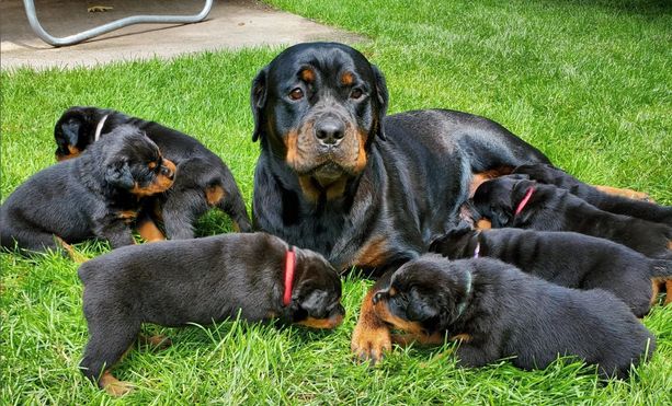 Here at Ironclad Rottweiler we are a big family, each and every one of my pups I have an incredible relationship with near and far. I train all our pups in German and in English commands, they are housebroken, crate & pad trained and you have me for whatever you need! It's nice knowing that you can contact your breeder for any reason at any time for guidance. I also puppy sit and I doggy midwife.