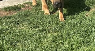 Our Boerboel puppies include reddish brown, red, fawn, and brown. Cane Corso puppies include chestnut brindle, black, black brindle, fawn, gray, gray brindle, and red. Colors will vary depending on the parent dogs.
