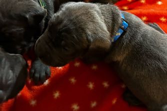 Our puppies include black, gray, and gray brindle. Colors will vary depending on the parent dogs.