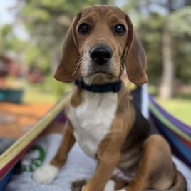Miley is a female Beagle. Carefully selected as a great representative of her breed, Chuck decided to make her part of their program. Chuck has passed Good Dog’s screening process, which involved a review of their breeding practices, environment, and the mental and physical health of their dogs.