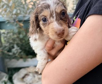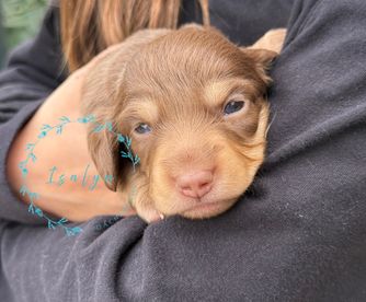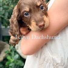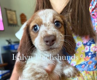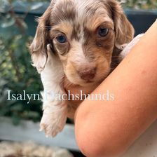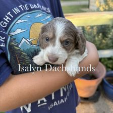 I'm Casey A., the breeder behind Isalyn Dachshunds located in Copperas Cove, TX. We have a small in-home breeding program since 2021. Our hearts are with piebalds. Dachshunds have owned our hearts since 2011. We are dedicated to providing our families with beautiful healthy pets. We specialize in piebalds and breed conformation.