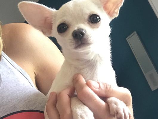Clara is a female Chihuahua. Carefully selected as a great representative of her breed, Melanie decided to make her part of their program. Melanie has passed Good Dog’s screening process, which involved a review of their breeding practices, environment, and the mental and physical health of their dogs.