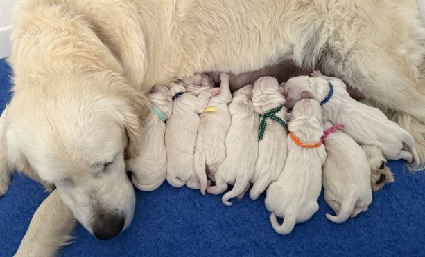 Our puppies are light golden. Colors will vary depending on the parent dogs.