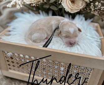 Georgia is our 13-lb mini Goldendoodle with the perfect blend of sweet and spunky. She’s calm and easygoing at home, yet outgoing and social wherever she goes. Georgia adores everyone she meets, but she’s definitely a mama’s girl at heart. She loves her morning car rides, belly rubs, and being part of whatever we’re doing. Her gentle temperament, intuitive nature, and balanced personality make her an absolute joy. The kind of dog who wins hearts everywhere she goes.