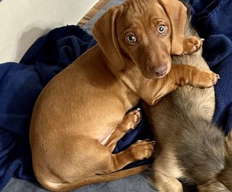 My MIL has bred doxies for years, but in 2021, my Mr. Rolo was lost in a tragic accident. I had to fill a void and find another dachshund to help us heal. My area had nothing to offer. So I decided to embark on breeding these beautiful animals and making them available to my hometown. I think they are amazing for families & kids and want to share that passion.