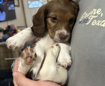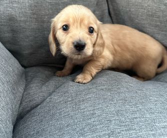 Lisa was so awesome to work with! I have been wanting an english cream dachshund for a while and she provided the perfect little addition to our family! She was super open to all the questions I had about this pup and his parent’s health background and always helped me with anything I needed. Even after getting our pup, Lennox, she guided me through vet stuff, shots, care, etc! Choose Lisa for help getting the puppy of your dreams! They come from such a great home!