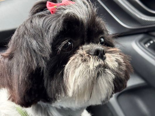 Coco is a standard black-and-white Shih Tzu. She is the sweetest girl with a great temperament. Coco loves to lay on our lap and get her ear scratched. She is great with kids and other animals, and she’s just an awesome girl overall.