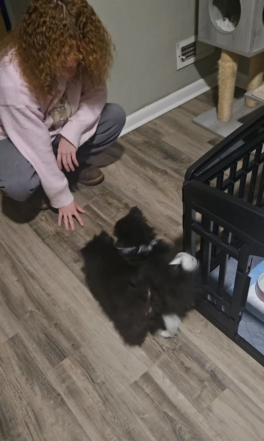 Phoebe is a small baby. Lol. She is spunky and full of confidence. She enjoys zooming around with the others, kids, adults, following the cat...you name it. At night she enjoys laying down and cuddling in bed.