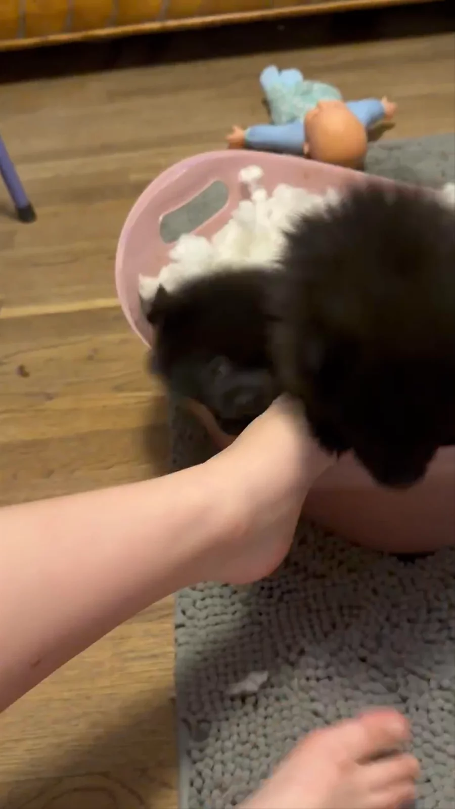 "Babydoll" bath time...and footsies 🤣