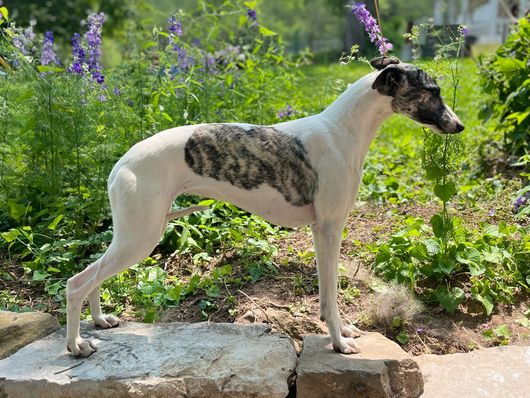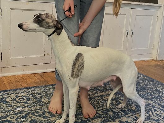 Thomas is a male Whippet. Carefully selected as a great representative of his breed, Lori decided to make him part of their program. Lori has passed Good Dog’s screening process, which involved a review of their breeding practices, environment, and the mental and physical health of their dogs.