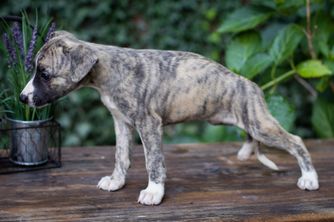 Cossette is a female Whippet. Carefully selected as a great representative of her breed, Lori decided to make her part of their program. Lori has passed Good Dog’s screening process, which involved a review of their breeding practices, environment, and the mental and physical health of their dogs.