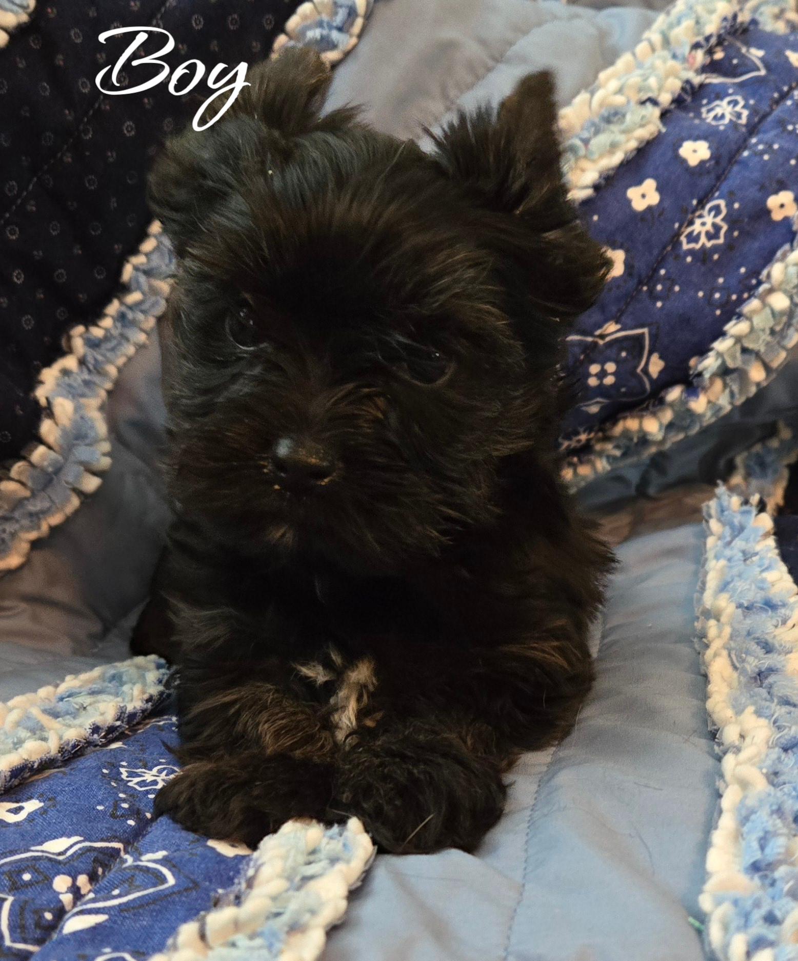 Mamba is an AKC registred three and a half lb KB black sable yorkie. He carries blonde and parti.