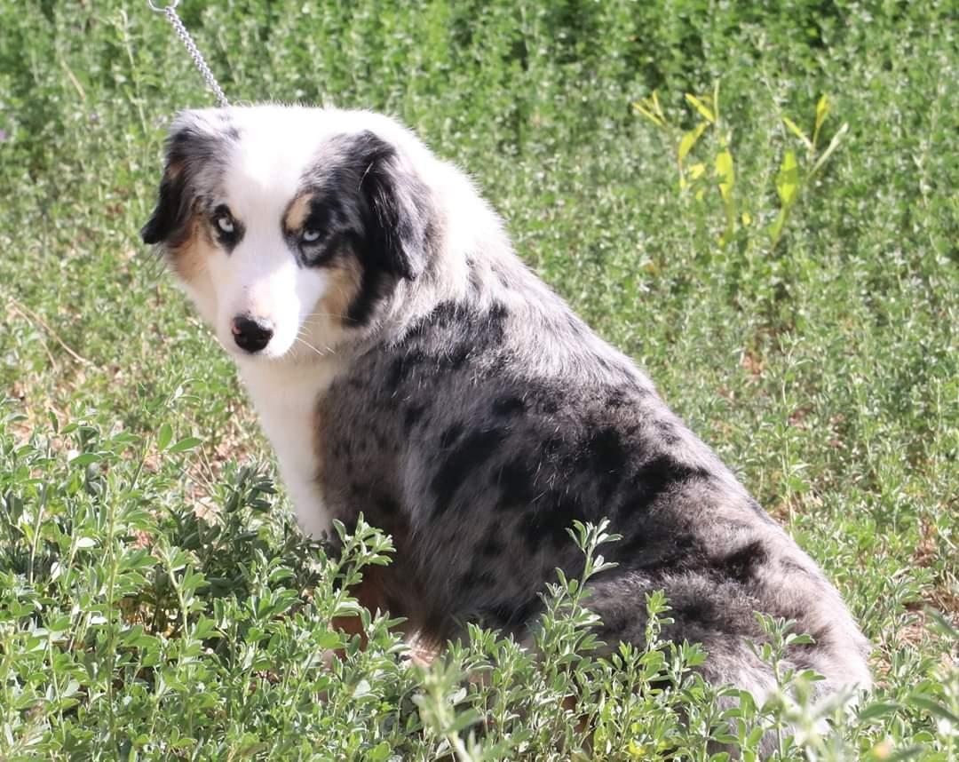 Chrome is a male Miniature American Shepherd. Carefully selected as a great representative of his breed, Rebecca decided to make him part of their program. Rebecca has passed Good Dog’s screening process, which involved a review of their breeding practices, environment, and the mental and physical health of their dogs.