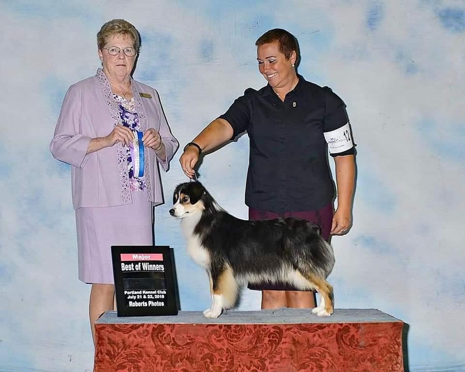 Fred is a stunning male breed here. His sire is AKC GCH CH Alta Dare To Be Unchained he's a beautiful balanced male. He loves to swim and play he has a fun outgoing personality.