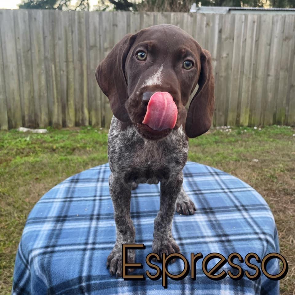 Our puppies include liver and white and liver roan. Colors will vary depending on the parent dogs.