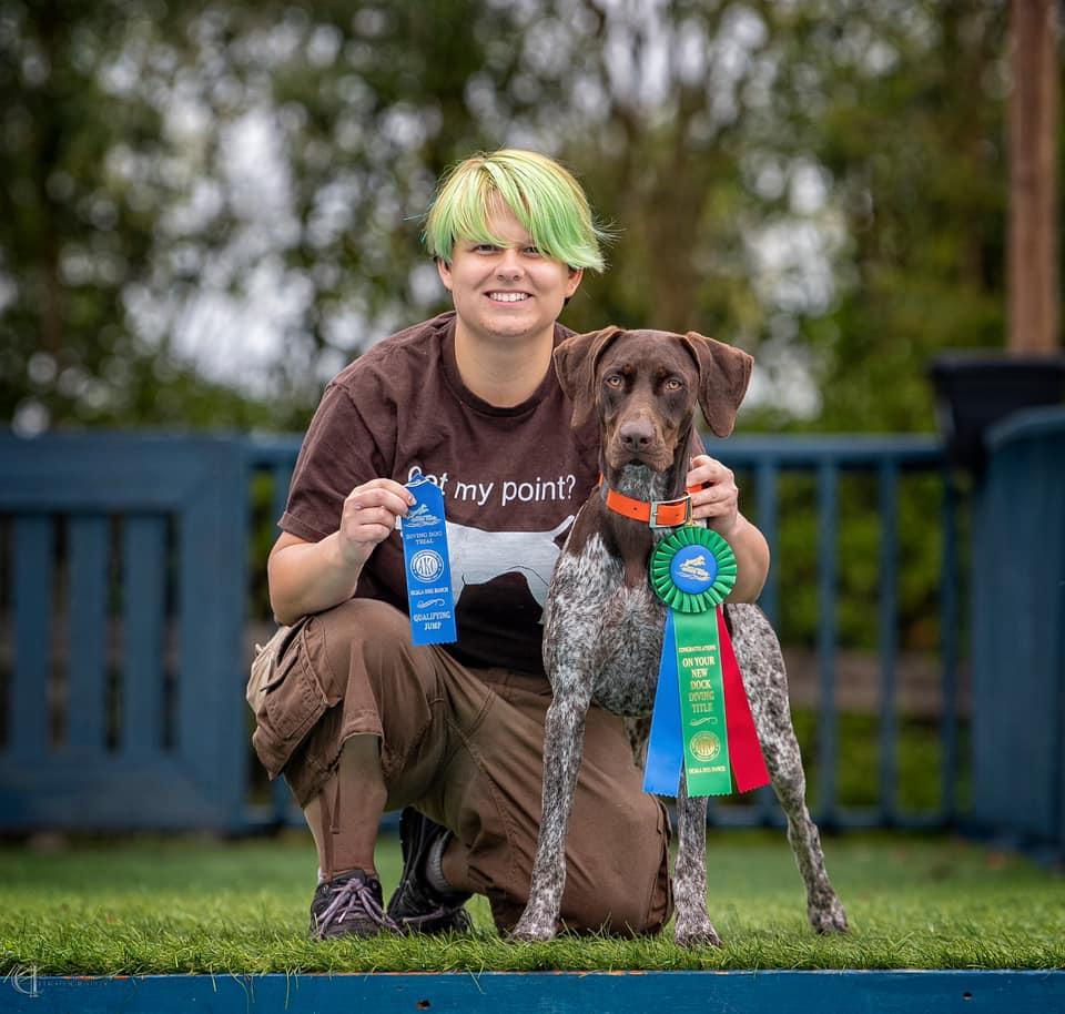 Cadence is a petite girl at 50 lbs and 21” tall at the shoulder. She is a smart, active girl who loves to hunt birds and dock dive! She has the drive to work all day, but has a wonderful off switch at home when it’s time to relax and cuddle on the couch.