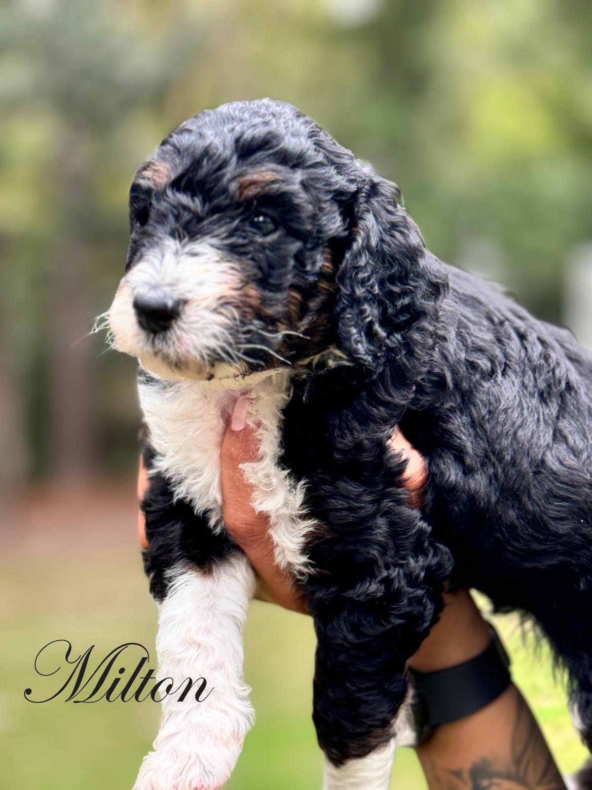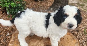 He's also health-tested and cleared for common breed-related conditions, ensuring he’s in top condition. His silly and trainable personality reflects the best traits of both the Australian Shepherd and Poodle, and he’s sure to pass along his good nature and smarts to his pups.