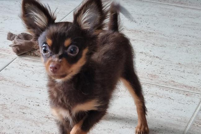 Our Russian Toy puppies include red sable, brown and tan, and black and tan. Papillon puppies are black red and white. Colors will vary depending on the parent dogs.