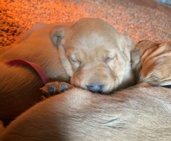 Ruddy is a female Labrador Retriever. Carefully selected as a great representative of her breed, Dallis decided to make her part of their program. Dallis has passed Good Dog’s screening process, which involved a review of their breeding practices, environment, and the mental and physical health of their dogs.