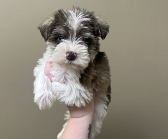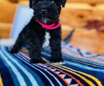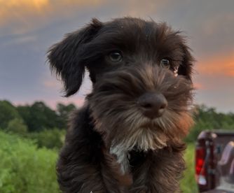 Our Labrador Retriever puppies include black, chocolate, and yellow. Miniature Schnauzer puppies include white, parti, liver, salt and pepper, black and silver, and black. Colors will vary depending on the parent dogs.