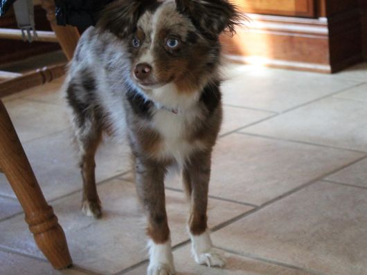 Blue Merle female. Double blue eyes. Gorgeous copper.