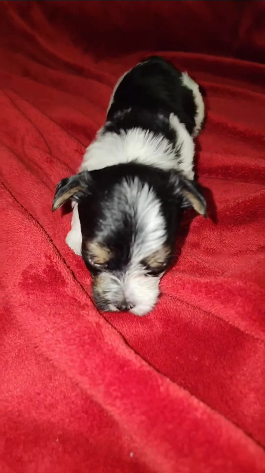 Good morning from Coco ❤️ the teacup Parti Yorkie