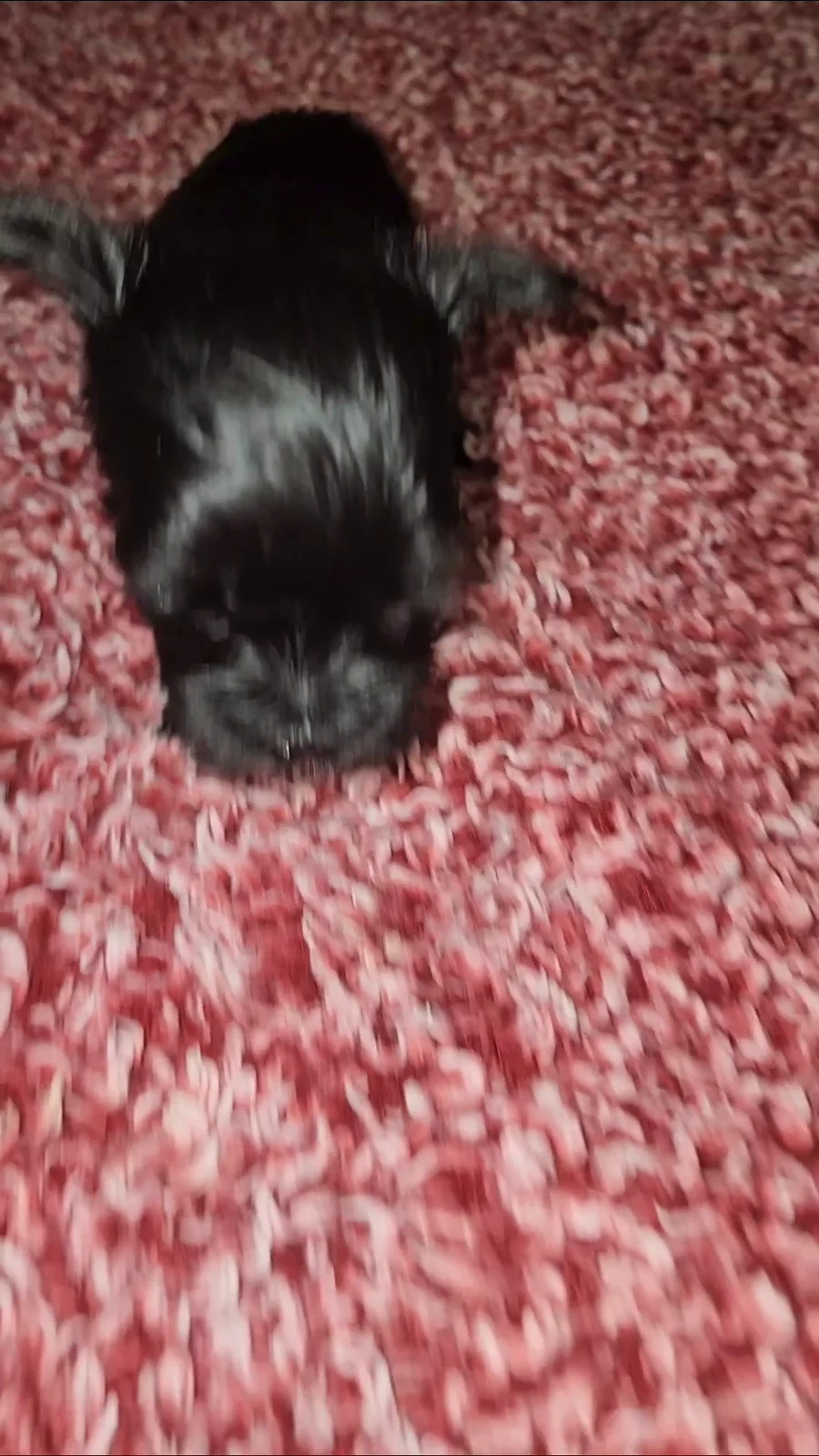 Drew is a gentle, calm, sweet girl that loves to cuddle and follow you around. She loves to run fast through the grass. Drew looks just like a black Yorkie but has 75% Yorkie and 25% Maltese.