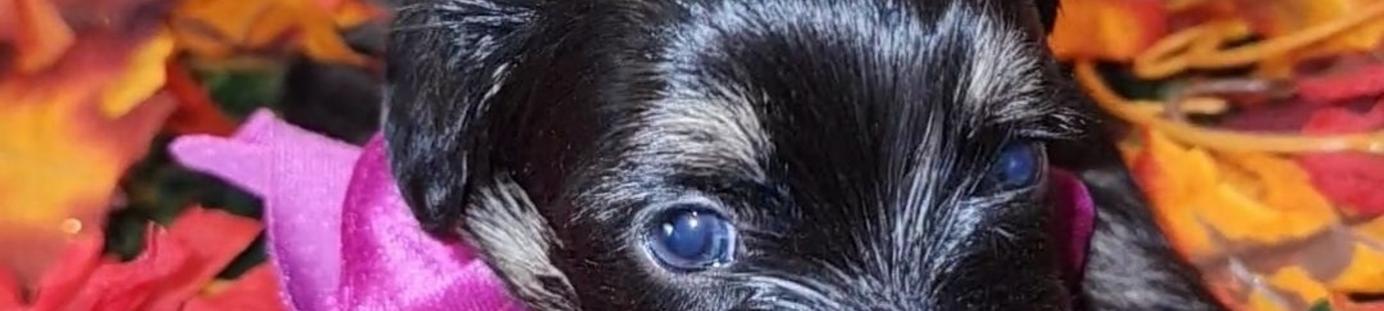 Our Yorkshire Terrier puppies include parti and black and gold. Poodle puppies are phantom. Yorkipoo puppies are black and tan. Maltipoo puppies include apricot, black, and cream. Morkie puppies include black, black & tan tri-color, and black and tan. Colors will vary depending on the parent dogs.