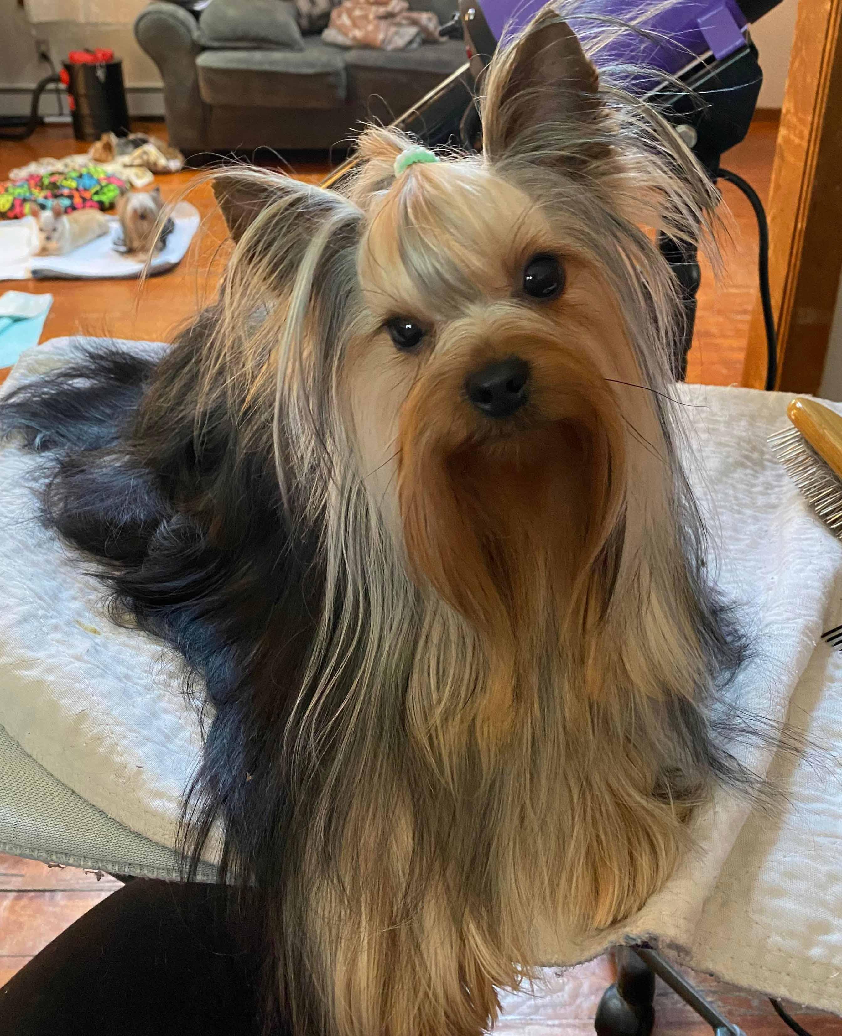 Yogi is a male Yorkshire Terrier. Carefully selected as a great representative of his breed, Jacqueline decided to make him part of their program. Jacqueline has passed Good Dog’s screening process, which involved a review of their breeding practices, environment, and the mental and physical health of their dogs.