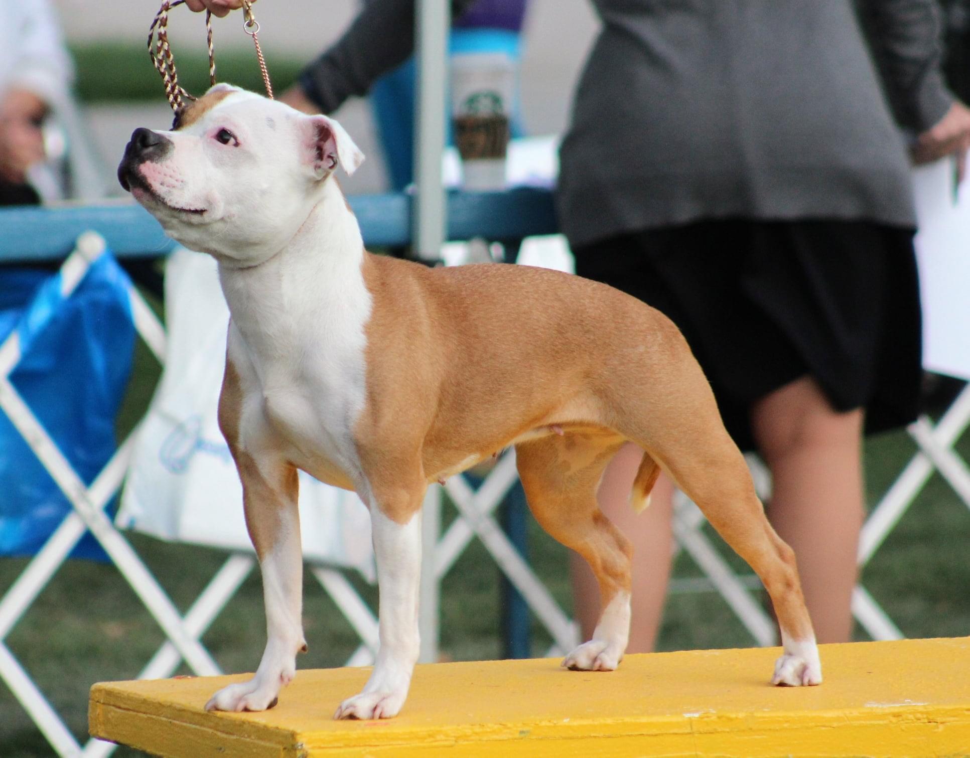 I'm Susan B., the breeder behind J Jax Staffords located in Lincoln, CA. Our dogs excel in sports and have earned titles in many. We also have multiple Grand Champions in conformation.