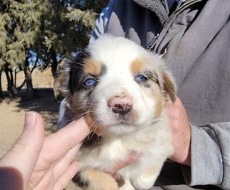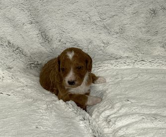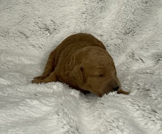 Our Goldendoodle puppies are red. Labradoodle puppies include red, cream, chocolate, and black. Miniature Australian Shepherd puppies include blue merle and red merle. Colors will vary depending on the parent dogs.