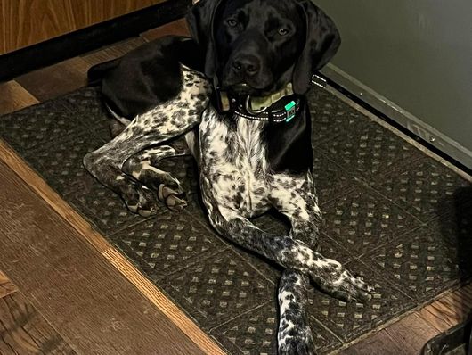 Ember is a female German Shorthaired Pointer. Carefully selected as a great representative of her breed, Jaclyn decided to make her part of their program. Jaclyn has passed Good Dog’s screening process, which involved a review of their breeding practices, environment, and the mental and physical health of their dogs.
